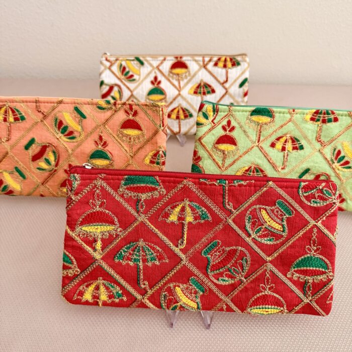 Embroidered Indian Zipper Pouch – Wedding Return Gift & Festive Favor Bag (set of 4)