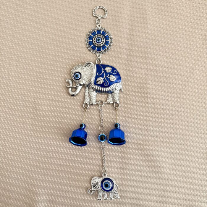 Elephant Evil Eye Wall Hanging with Bells – 10” Spiritual Decor for Home Protection